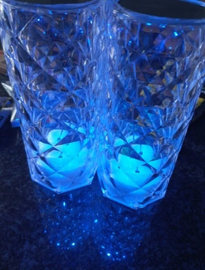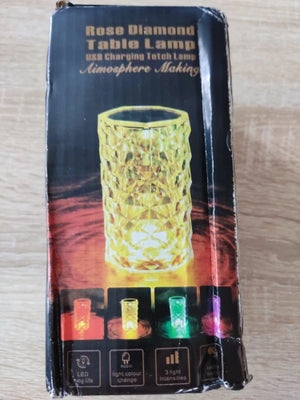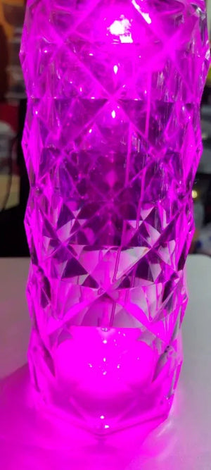 Material & Design: Acrylic body with diamond / crystal-cut faceted surface; 3D rose projection effect when lit
