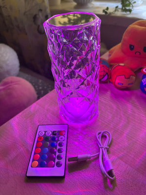 Transform your living space with this stunning crystal lamp. It projects a mesmerizing rose pattern, instantly turning any room into a romantic escape. Ideal for cozy evenings or special occasions.
