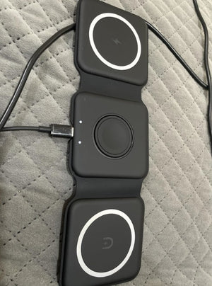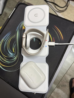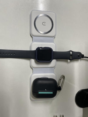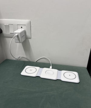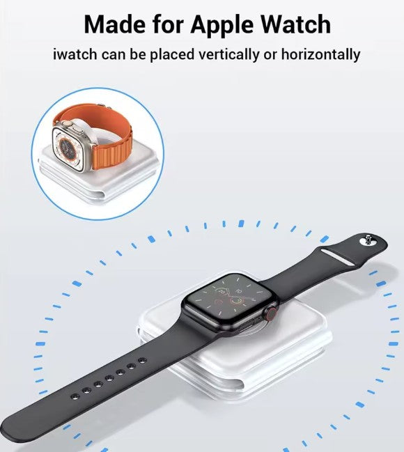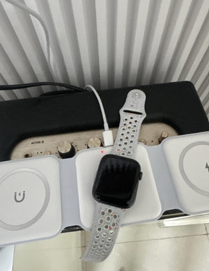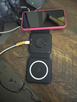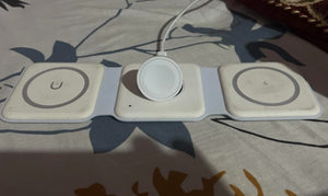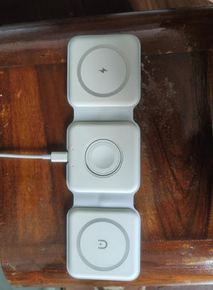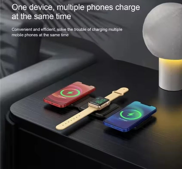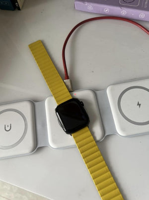 Experience the freedom of a clutter-free space with our foldable magnetic charger. Charge your iPhone, Apple Watch, and AirPods simultaneously, all in one neat spot. No more searching for different cables or outlets!