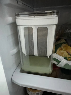 Simply refrigerate for longer. The strainer allows customizable thickness based on your preference.