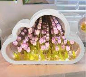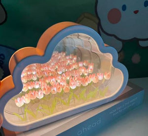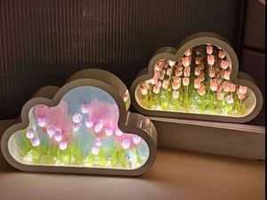 ๐ Perfect Gift โ A dreamy cloud mirror with tulip flower sea night light, making a charming DIY handmade birthday present for girls and loved ones.